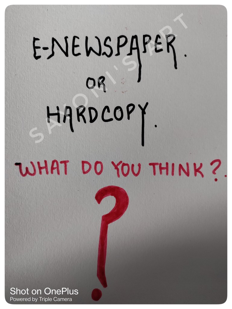As everyday, Mohona went to school but in the social studies class the teacher asked how many of them read the hardcopy of the newspaper? Mohona immediately said , ” Ma’am ma’am ! I read the advertisements and celebrity news and my father reads the important newspaper and my mother reads through online subscriptions.