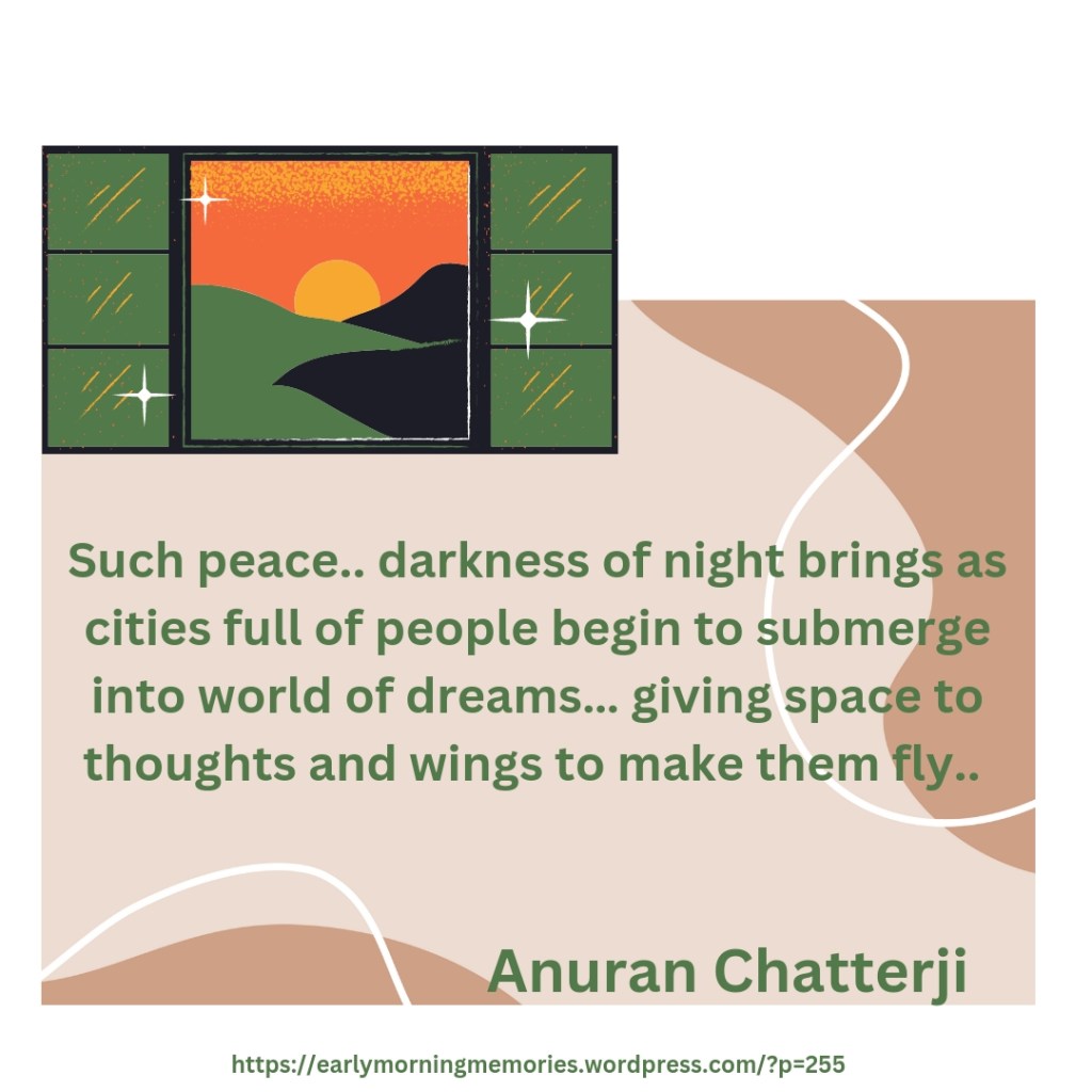 Such peace.. darkness of night brings as cities full of people begin to submerge into world of dreams… giving space to thoughts and wings to make them fly..